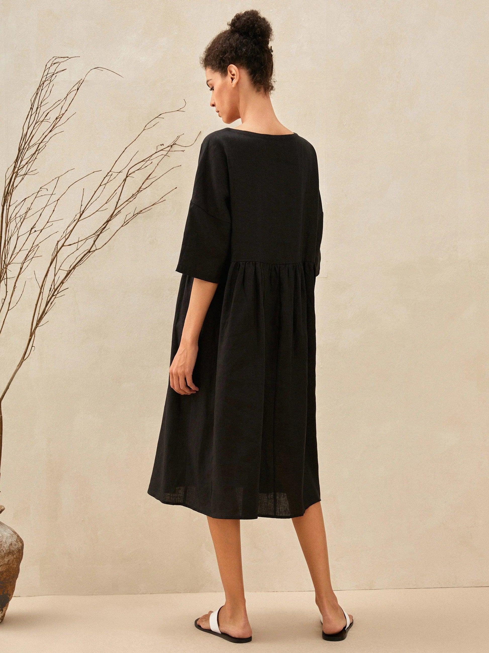 Let the breeze guide your movements in this short-sleeve dress, with its delicate and flowing hemline that adds a touch of graceful charm to your every step.