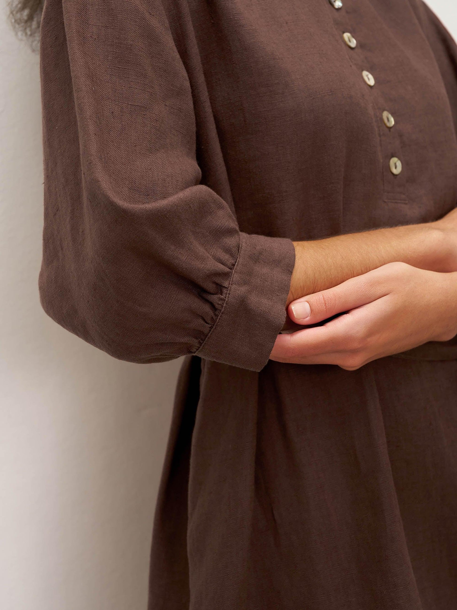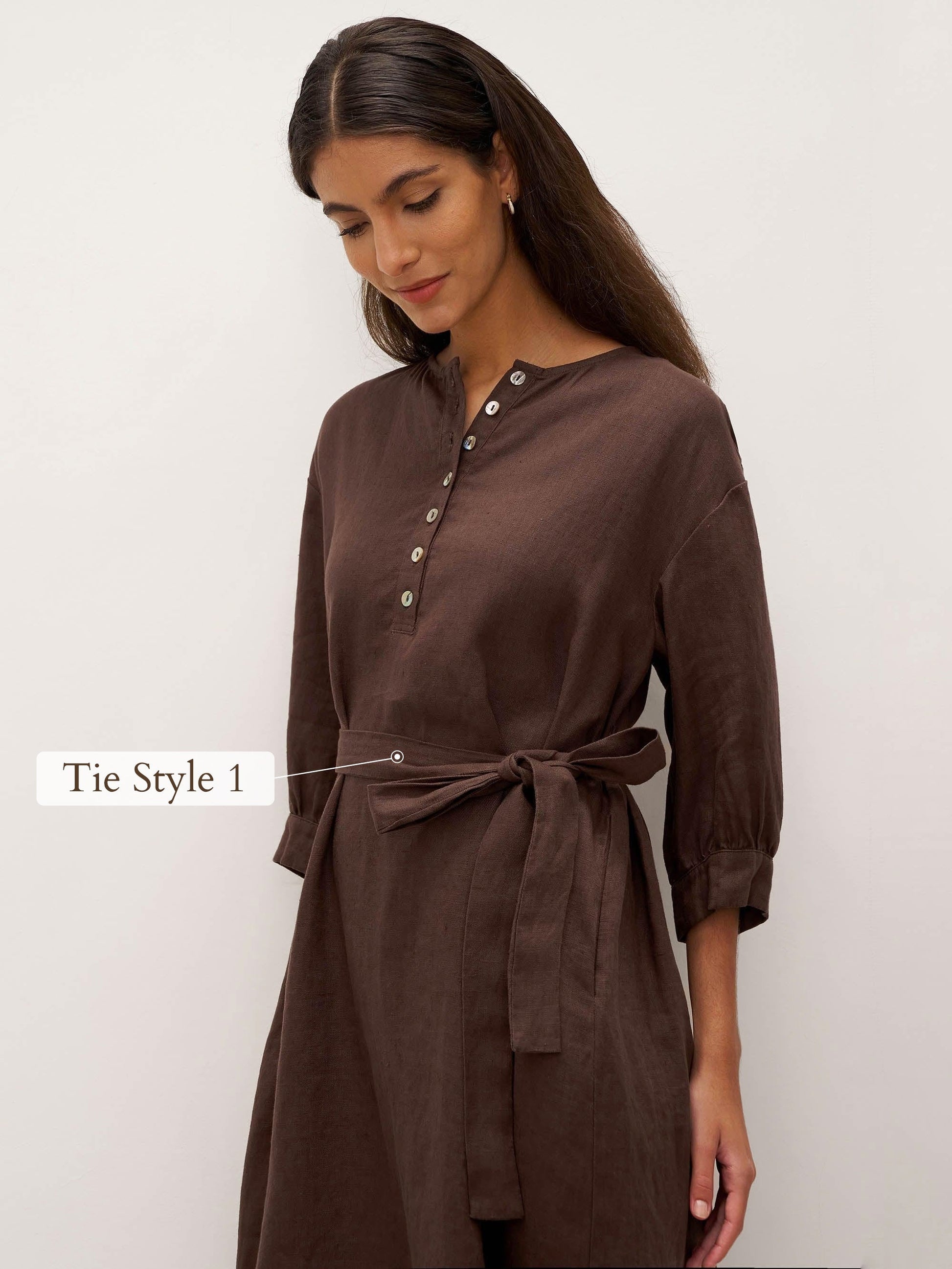 100% Linen Button Detail Midi Dress with Detachable Belt EIRA