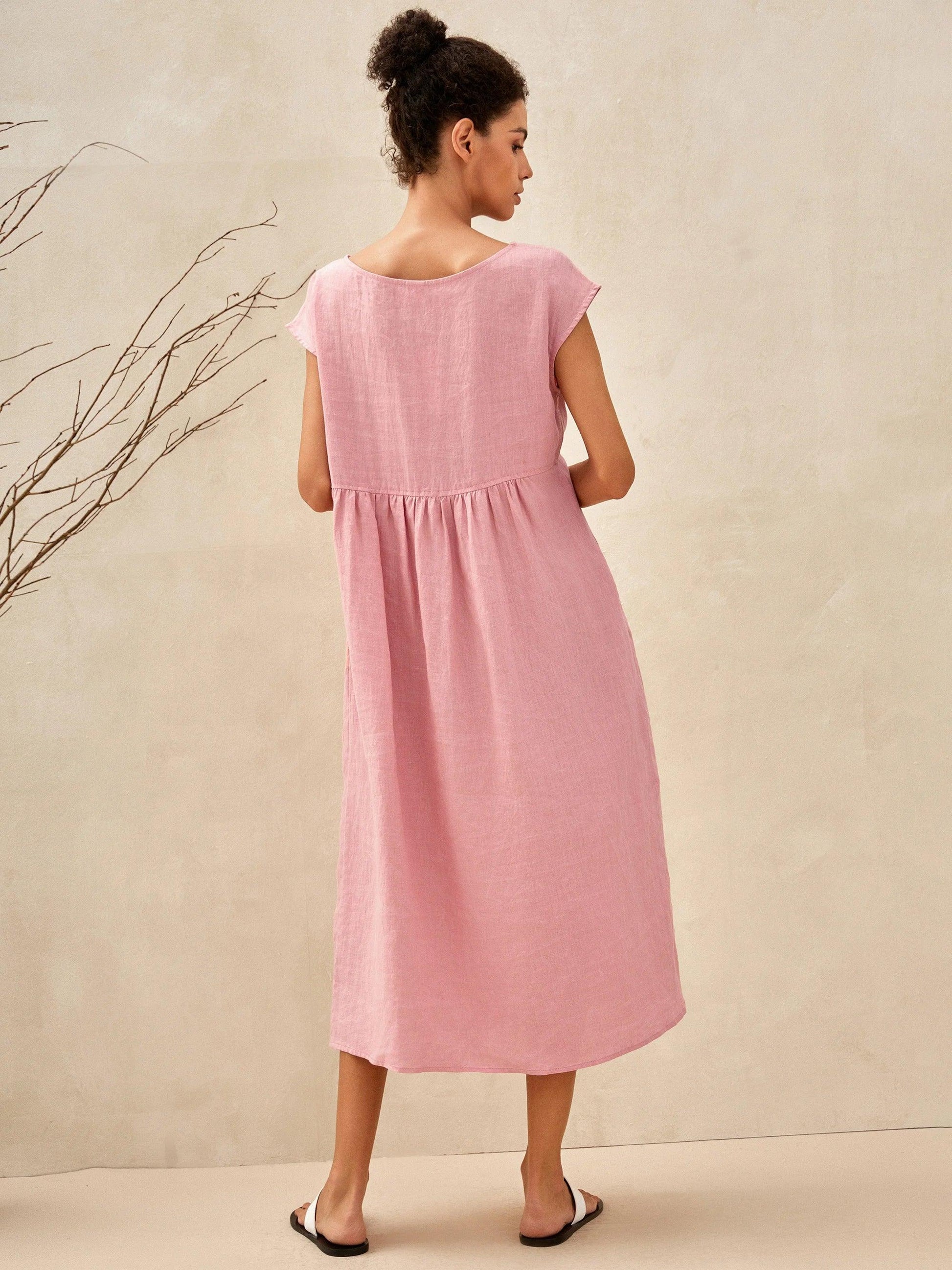 100% Linen Cap Sleeve Washed Maxi Dress JOAN