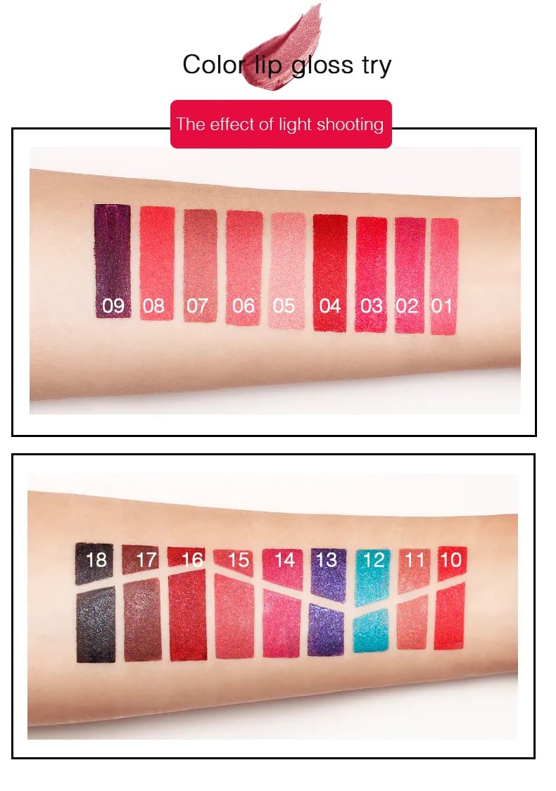 ❤Total of 18 Colors Lip Stick Set, charming metallic, full size lip gloss of most of most popular colors. Perfect as a great gift to your Lover, Family and Friends when Valentine's Day, Birthday, Halloween, Christmas and other Festival