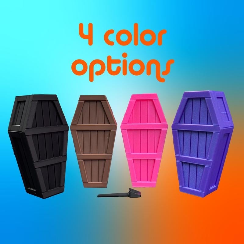 Compact, Collectible & Reusable!Measuring approximately 5.5" x 2.75" x 1.75", each coffin is the perfect size for display, play, or seasonal decor. Durable, detailed, and made with care, these 3D printed containers are built to last and designed to delight—year after year. Handcrafted Halloween Magic Made using high-quality 3D printing, this countdown brings a handmade, creative twist to traditional advent calendars.