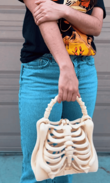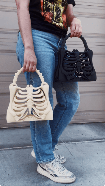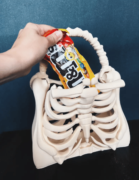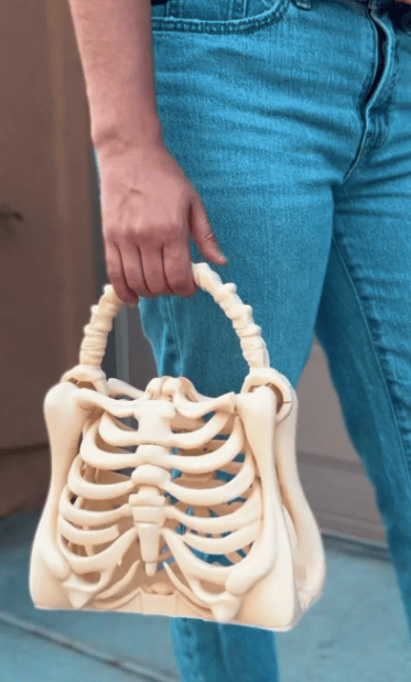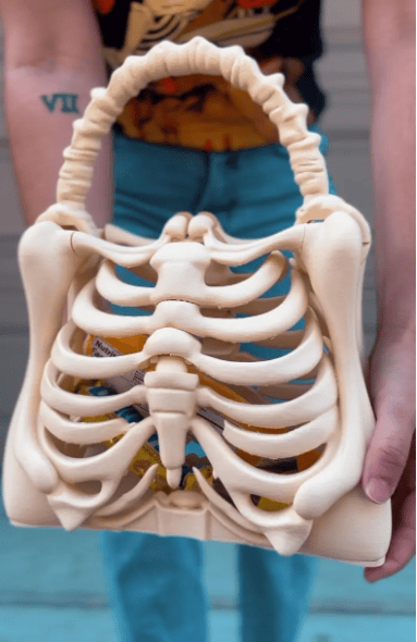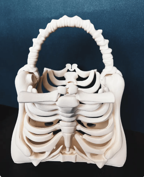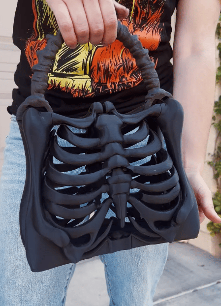 Turn heads and break necks (figuratively, of course) with this one of a kind 3D-printed ribcage skeleton bag! Perfect for Halloween, cosplay, festivals, or just making a bold statement year-round.