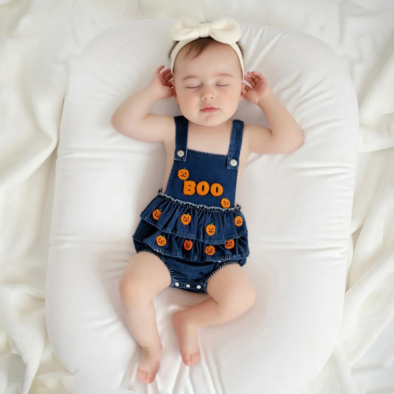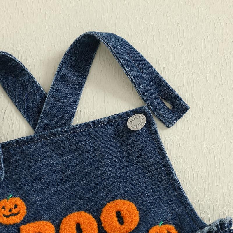 Spooky-Cute Halloween Denim Romper for Your Little Pumpkin!
