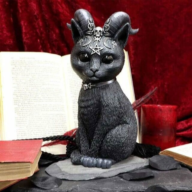 Inside this cat appears to be the spirit of Baphomet, encapsulated by goat horns and satanic symbology. Cast in high-quality resin and carefully hand-painted this figurine is likely to be the cutest occultist you've ever seen.