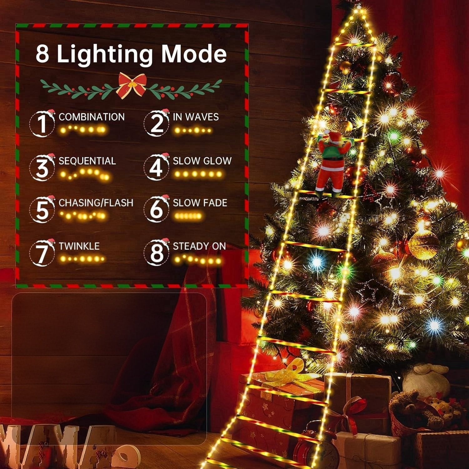 Patent design 2025Newest Christmas Decoration Lights - Unique-designed Christmas lights composed of a 9.84ft lighted rope ladder and a detachable Santa, will add a lot of festive atmosphere for your Christmas. This Christmas decorative light is perfect for home, garden, yard, window, porch, Christmas tree DIY decor