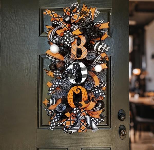 ✨✨Welcome to the joyful world of Halloween! This exquisite decorative wreath features a classic combination of black, orange, and white, perfect for adorning your home, front door, or party venue. Every detail is meticulously designed, from playful black-and-white check patterns to whimsical pumpkin elements, bringing great visual enjoyment.