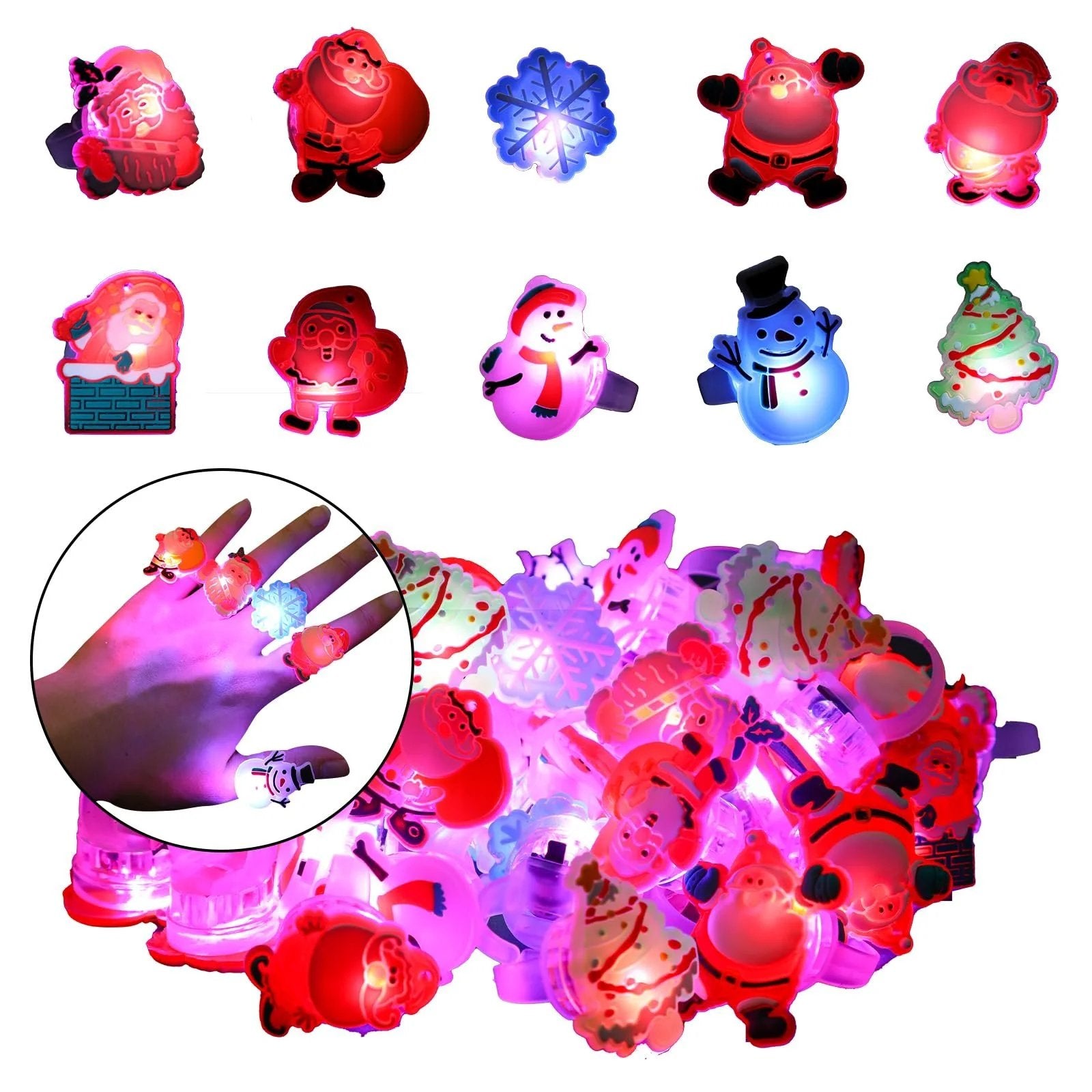 - Light up Christmas Rings- The glow in the dark party favors small toys set contains 50 pcs flashing LED Christmas rings.These glow in the dark party supplies have 10 different styles and will light up night of Xmas.Perfect for kids/adults party supplies decoration and party games.