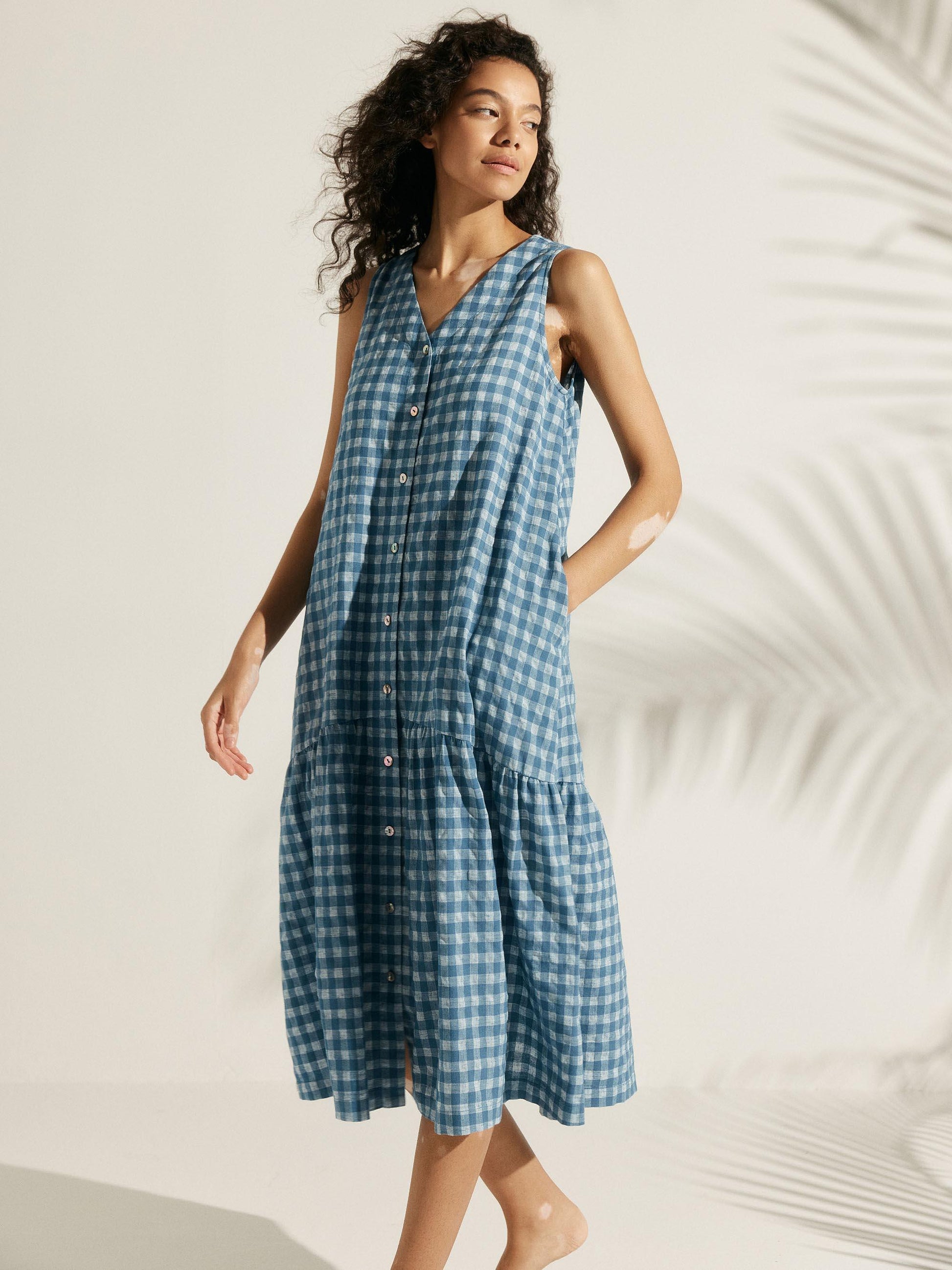 Linen Vacation Sleeveless V-Neck Mid-Length Dress CELINE