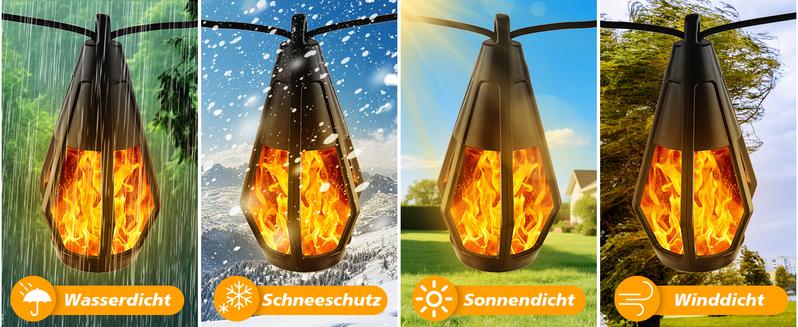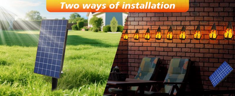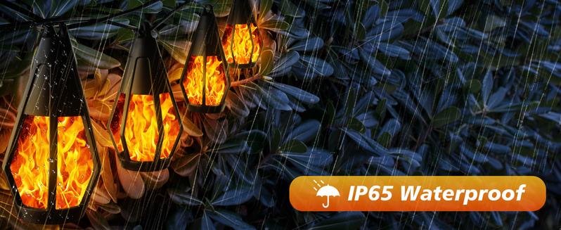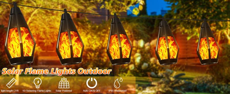 Outdoor Solar String Lights with 15 Flickering Flame Bulbs, Waterproof Warm White Solar Outdoor Lights for Garden Patio Gazebo Tavern Cafe Party Halloween Decoration